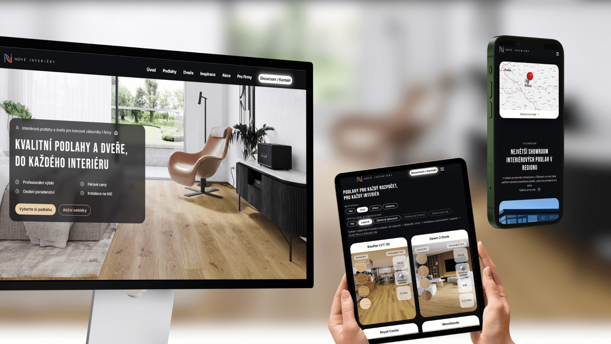 Projekt pro Nové interiéry vznikl jako kompletní redesign původního webu – nejen po vizuální stránce, ale především obsahově a strukturálně. Cílem nebylo vytvořit „hezčí web“, ale funkční nástroj, který zákazníkům pomůže se rozhodnout.